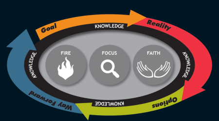 W. In the final step, (way forward), you ensure that you're committed to making the journey, and are prepared for the obstacles that you could meet on the way.