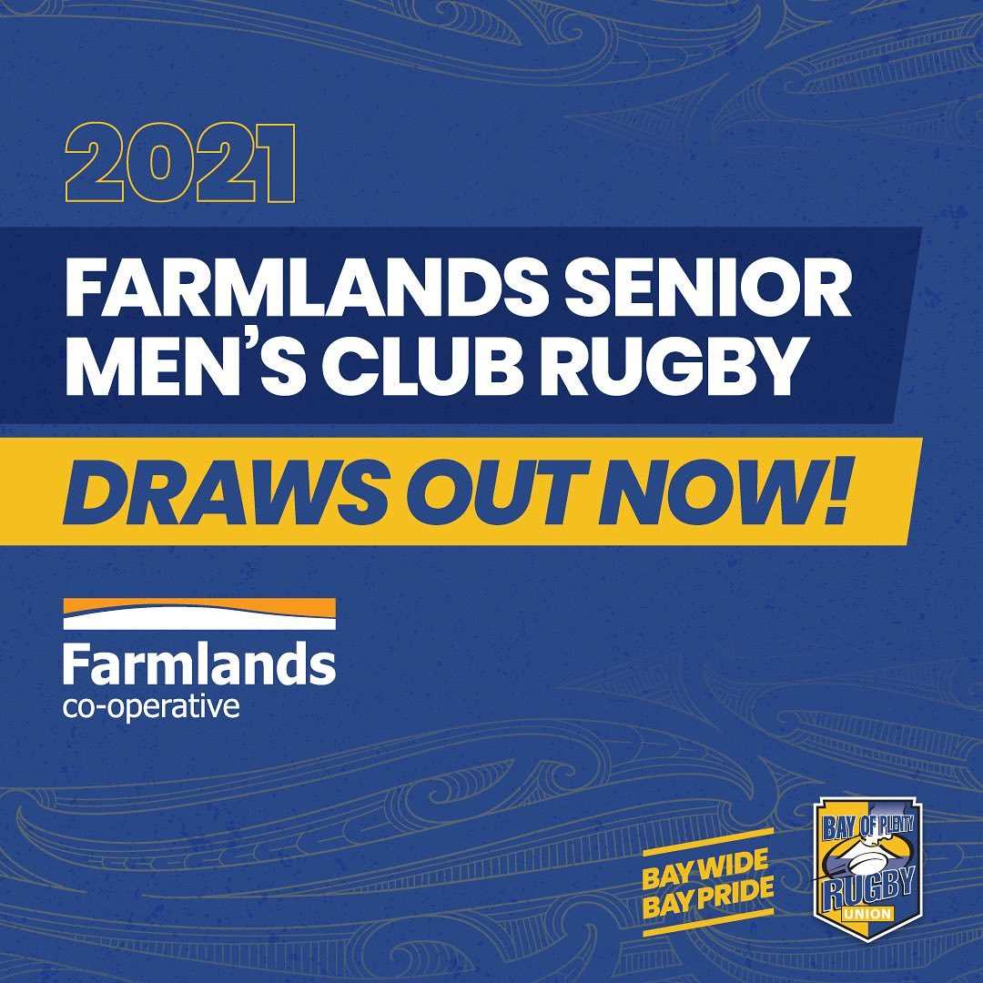 The 2021 Farmlands Co-operative Baywide Senior Mens club rugby competition kicks off on Saturday 10th April with last year's Western Bay Premier Mens champions, Tauranga Sports hosting Central Bay Premier Mens champions, Whakarewarewa at the Tauranga Domain, 2.45pm kick off.