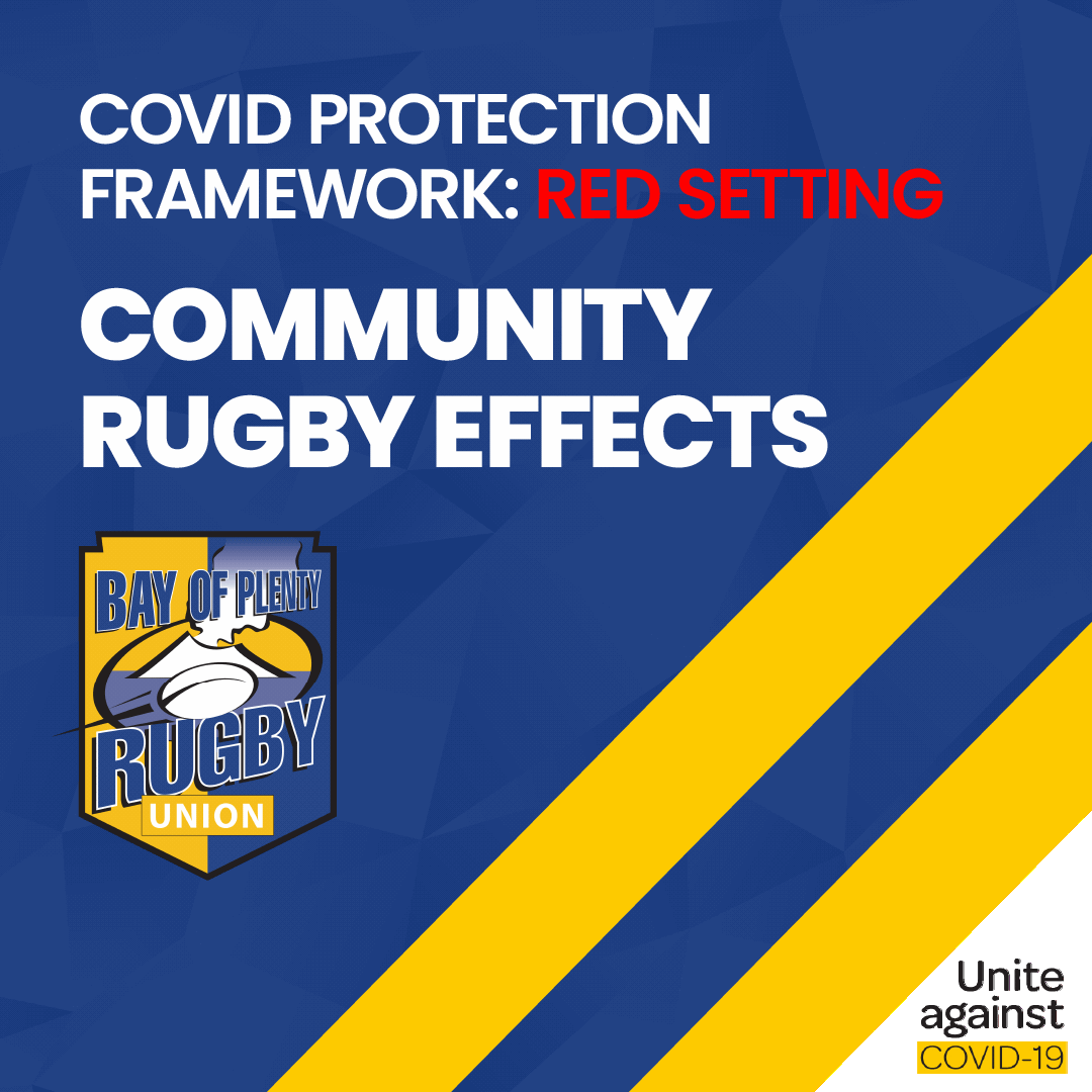 Under the “RED” setting, the Bay of Plenty Rugby Union envisages that tournaments and events like 7’s and 10’s tournaments most likely will need to be postponed or cancelled. Stay tuned as we await clarification from New Zealand Rugby, School Sport New Zealand and Sport New Zealand.