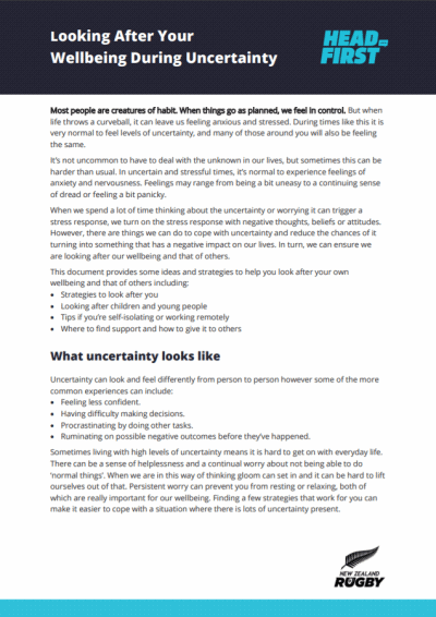 Headfirst was created to help players, coaches, referees, support staff and families in the rugby community to support their own wellbeing and that of others. There's no better time to check out the site, and put into practice some of their tips and strategies.